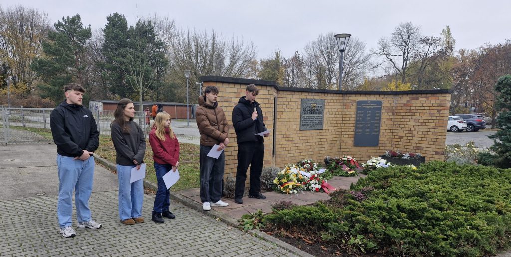 Am 9.11.2025 haben die Schülerinnen und Schüler der Seminarkurses „Nationalsozialismus“ die offizielle Gedenkfeier der Stadt Oranienburg gestaltet.