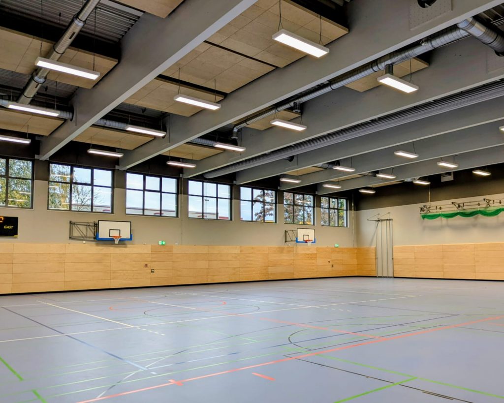 Unsere moderne Schule ist mit ihrem Gebäude und den Sportanlagen idyllisch an einem Flussarm der Havel gelegen.